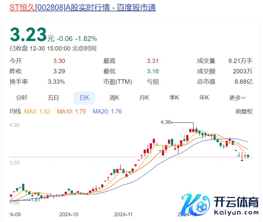 不外,近期ST永远股价却阅历了一次“狂飙”。在本年国庆后至12月初梗概2个月的时刻内,ST永远股价从2元摆布一度暴涨至最高4.36元,涨幅超过100%,时期有过多个连板。截止12月30日收盘,ST永远股价跌1.82%,报收3.23元,相较10月初仍有超过50%的涨幅。