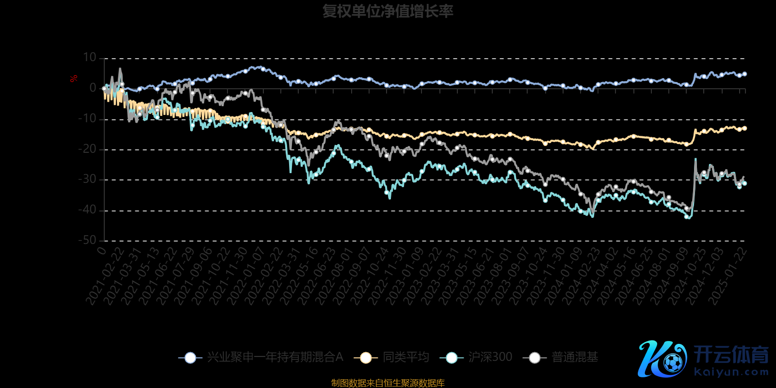 截止1月22日,兴业聚申一年执有期搀杂A近三个月复权单元净值增长率为0.43%,位于同类可比基金458/670;近半年复权单元净值增长率为1.68%,位于同类可比基金529/670;近一年复权单元净值增长率为5.21%,位于同类可比基金493/664;近三年复权单元净值增长率为-1.19%,位于同类可比基金376/525。