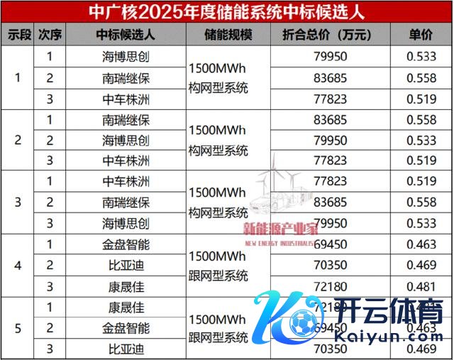 2025 年 1 月月中广核大储中标企业(图源:集会整理)