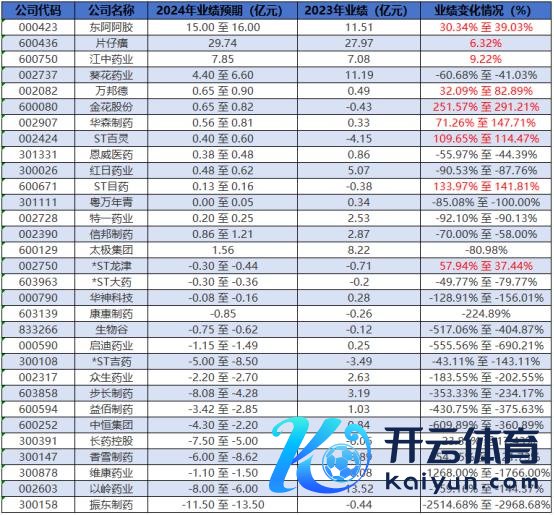 中药行业上市公司 2024 年功绩预报