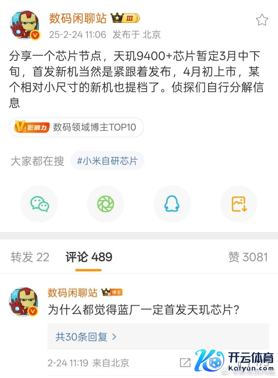 为何这样讲呢?全球看来自驰名爆料东谈主“数码闲话站”的音问。字据他提供的信息联发科天玑9400+将在3月中下旬矜重发布,这比天玑9300+提前近两个月的时辰。况且天玑9400+矜重发布之后首发新机就会上,梗概4月份初就能看到联发科天玑9400+新机了。这些其实不是重心,重心是他在与网友互动中暗示“为什么合计蓝厂一定首发天玑芯片”。换言之这一次联发科天玑9400+不一定是vivo首发,那么首发者就应该是OPPO,再莫得其它品牌了。毕竟当今小米不会在住持旗舰上用联发科,约略也不怎么用联发科的旗舰经管器。