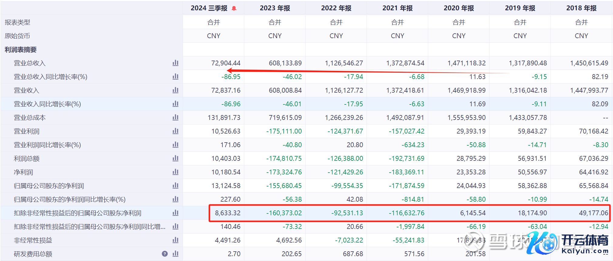 你去看他的利润表,你会很疼痛。2018年扣非归母净利润还有4.9亿。然后21年-23年扣非归母辞别是亏蚀11.66亿、9.25亿和16亿,基本上把历史上赚的钱亏完毕。2024年营业收入只剩下7.29亿,扣非归母净利润还有0.86亿。