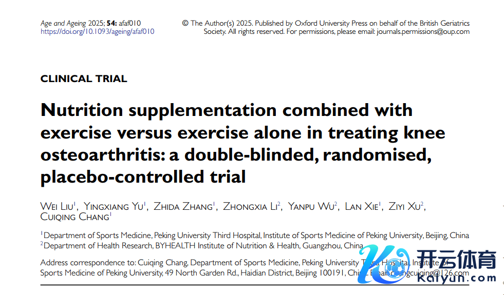 近日,汤臣倍健健力多荟萃北京大学第三病院在全球巨擘医学期刊《Age and Ageing》发表重磅临床实证后果,阐述健力多氨糖、硫酸软骨素、钙等组合物荟萃判辨对中老年的膝枢纽炎东谈主群的枢纽总体改善灵验率高达70%。